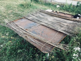 Wir nutzen die getrockneten und von Wind und Wetter gebleichten Stängel zur Produktion von Rollos, die zur Verstattung und als Sichtschutz dienen.
